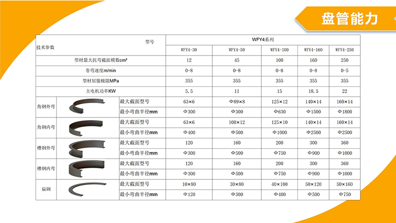 螺旋盤管生產線是我廠目前機械設備銷售的主要業務板塊,已為國內多為位鍋爐廠、壓力容器制造企業進行了生產線設備配套和技術服務。我廠擁獨立開發的WFY4系列盤管生產線,和擁有專利技術的WFY7系列阿基米德螺旋型扁平管生產線,為盤管生產節約了大量校正時間和人力物力,受到客戶的一致好評。